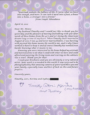 Doing projects involving volunteers can be frustrating. Trying to find the names of owners, writing letters, hoping for response. Not so much fun. But, when people do respond, their generosity and good will is overwhelming.